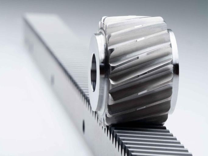 當進給力較大時,通常采用雙厚齒輪的傳動結構。進給運動由軸2輸入,通過兩對斜齒輪將運動傳給軸1和軸3,然后由兩個直齒輪4和5去傳動齒條,帶動工作臺移動。軸2上面兩個斜齒輪的螺旋線的方向相反。如果通過彈簧在軸2上用一個軸向力F,使斜齒輪產生微量的軸向移動,這時軸1和軸3便以相反的方向轉過微小的角度,使齒輪4和5分別與齒條的兩齒面貼緊,消除了間隙。